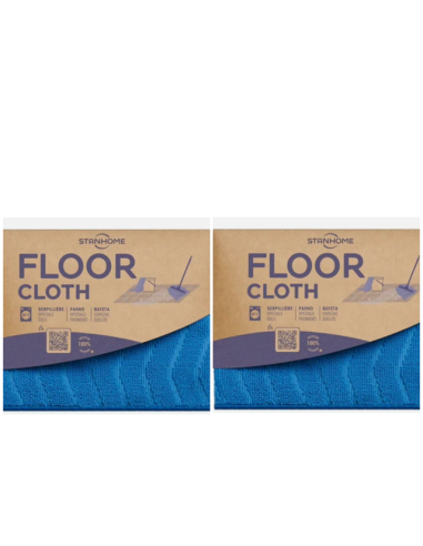Set 2pz x Special floor cloth in MICROFIBER made from 100% recycled polyester, thanks to the double face you can clean all types of floors thanks to the millions of microfibers that increase cleaning efficiency by removing even the most stubborn encrustations, capturing even the most imperceptible dirt and a soft part suitable for drying and polishing the floor