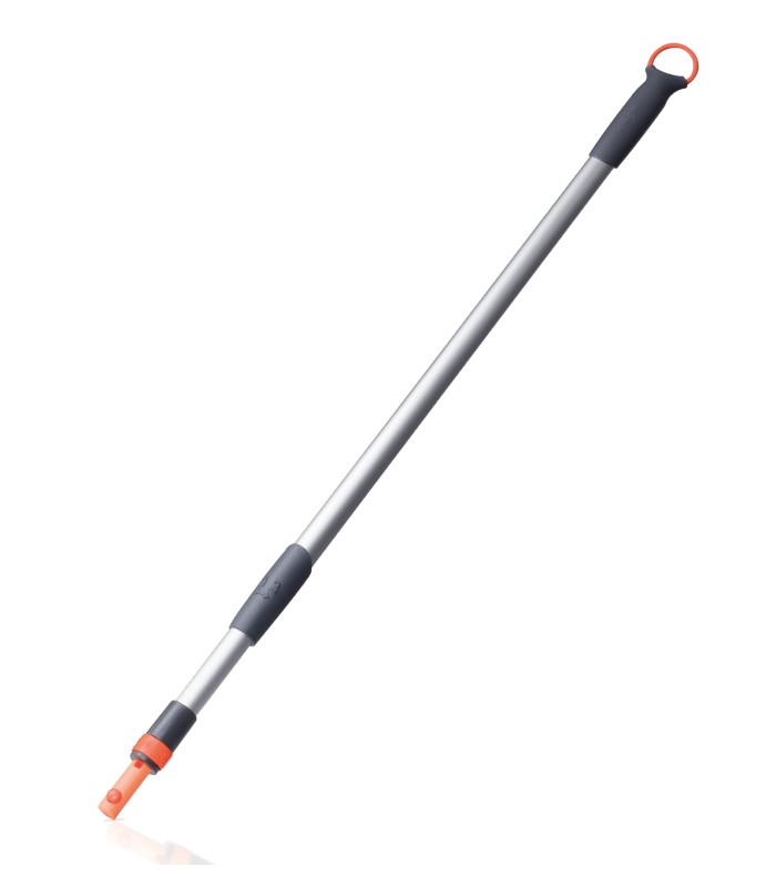Flexible telescopic handle (87 cm to 1 m 43) with an integrated locking system to reach high surfaces and adapt to all body types. This a handle is particularly magical because it contains a flexible part. A simple click releases the flexible part to clean under the furniture without bending over.
