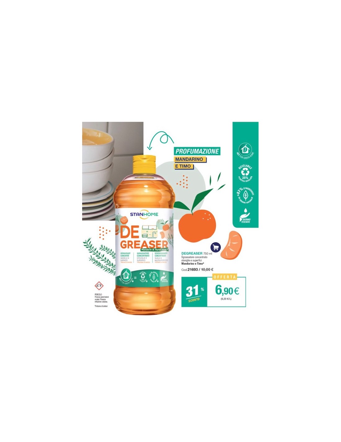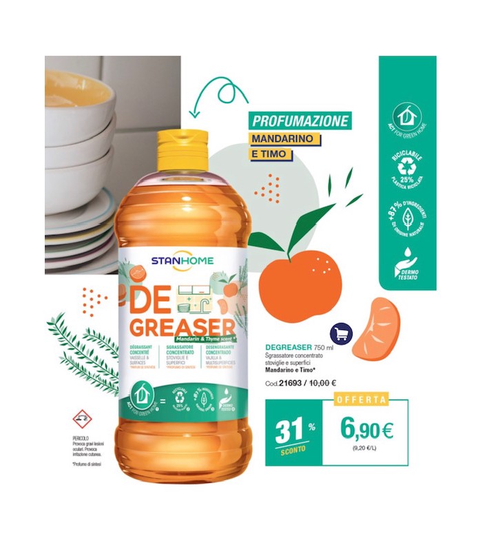 Azioni: Azione 2 in 1, usato come sgrassatore universale e come detersivo per le stoviglie lavate a mano