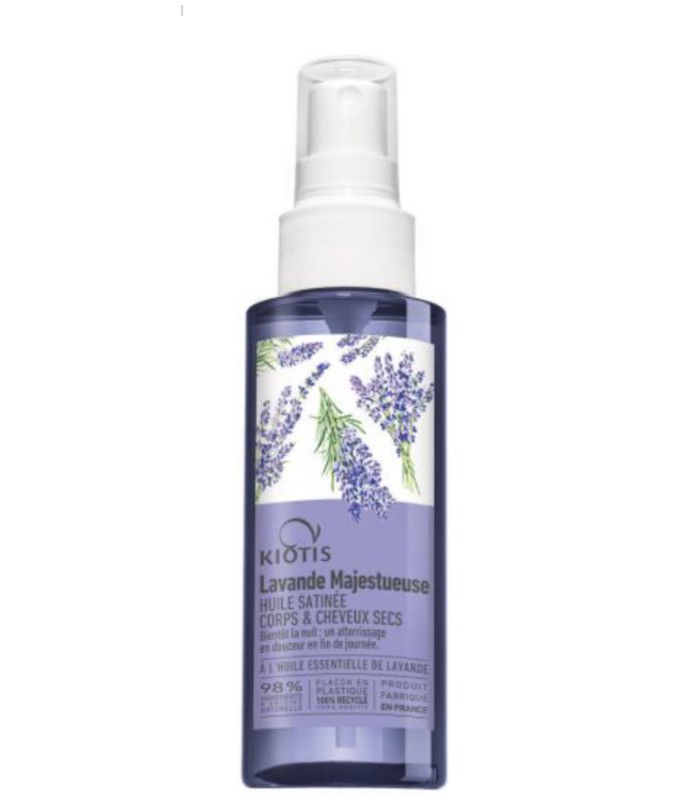A nourishing satin oil with lavender essential oils for nourished hair and a shiny skin and deliciously scented with lavender relaxing properties .