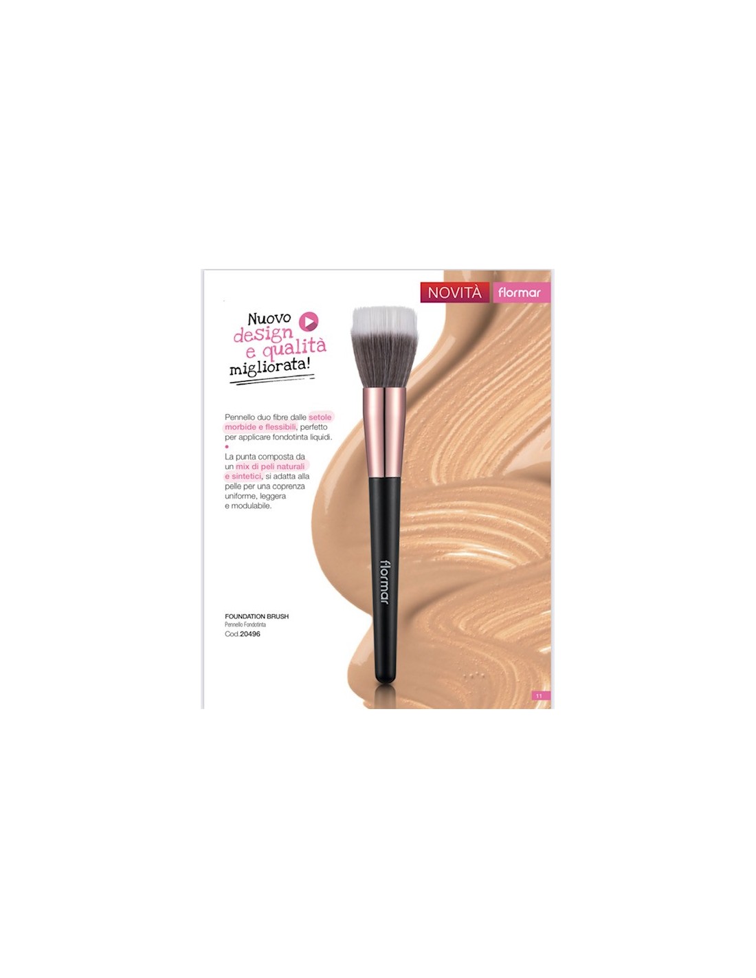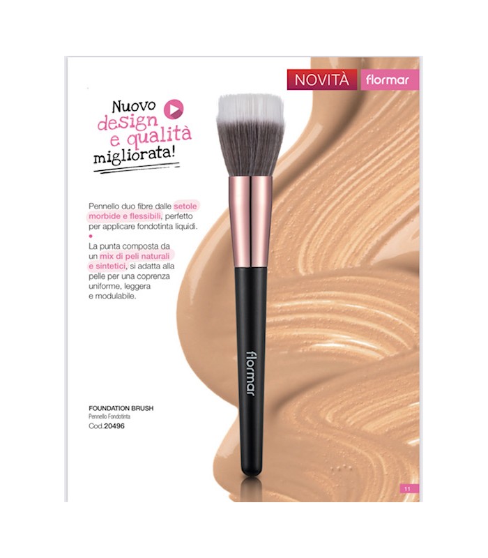 Makeup brush ideal for applying foundation thanks to the tip composed of a mix of natural and synthetic hair, it adapts to the skin for a uniform coverage, light and modular.