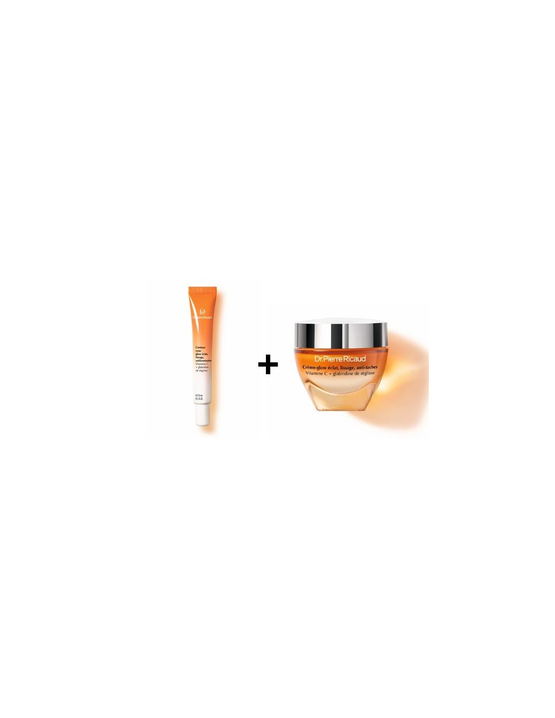 SET glow alla vitamina C e Glabradina di Liquerizia , crema e contorno occhi antimacchie per una pelle più luminosa levigata e uniforme
