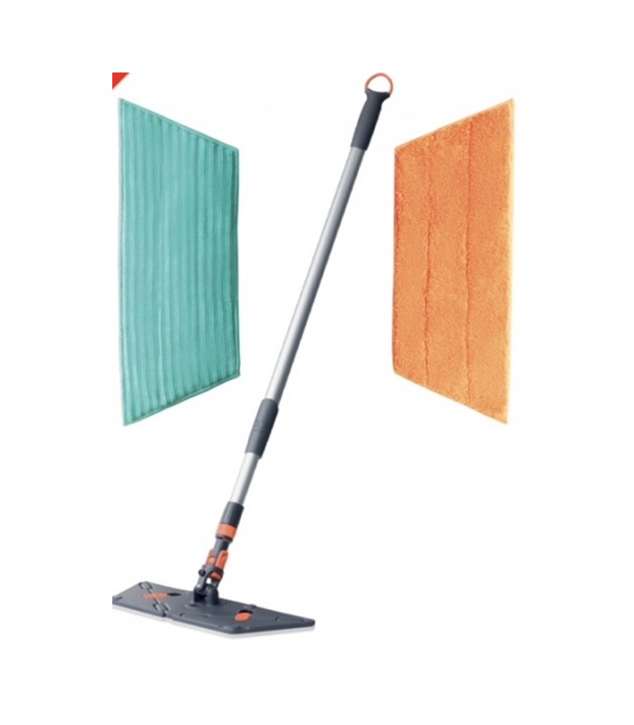 This head is unique on the market. It adapts to the surface you need to clean. For large areas, appreciate its trapezoidal shape and for small areas, bend back the ends of the head to get a triangular shape and thus reach the most difficult to reach corners. Ultra-flat to easily clean everywhere from floor to ceiling adaptable to all situations, to be applied on telescopic handle Magic Tool Handle + cloths suitable for splovero (dry mop) that for washing surfaces (Wet mop) .