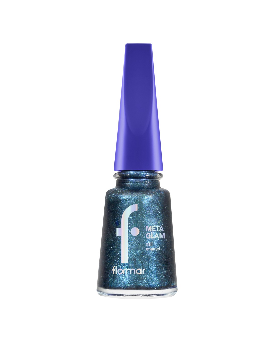 Flormar Metaglam High Pigmented & Intense Shiny Finish Glitter/Metallic Nail Polish is a metallic nail polish variety that gives the nails intense color. It has a reflective feature. It is resistant to chipping and peeling. It offers a long-lasting effect.